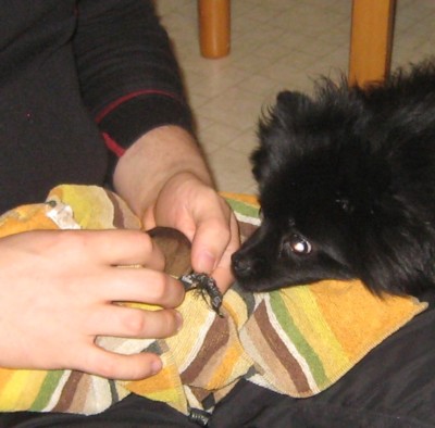 | Aadan pennut 8-14 vrk (luotu 8.1.2011, päivitetty 10.1.2011) B5-pentue, synt. 1.1.2011 9.1 (8 vrk) Basilika ja Beethoven sylissä olohuoneen puolella käymään, Femi sai haistella - sen vähän mitä uskalsi. Päivällä ulkoilua peltotiellä. Illalla Aada poistui todella vähän pentulaatikosta, istui omituisesti. Nisä turvonnut, takajalat heikot ja kuumetta 40,6 astetta. Päivystykseen, jossa kuumemittari näytti 41 astetta. Ainakin nisätulehdus kyseessä. Kohtu ultrattu, ok. Nesteytetty ja 2 ml kalkkia suoneen varmuuden vuoksi. Antibiootti niskaan. Aada imettämässä pennut ennen lääkäriin lähtöä. Kipeä nisä näkyy Bubblesin ja Basilikan välissä. Beethoven nukkuu sylissä vas. Basilika pyyhkeen sisällä sylissä, oik. Femi haistelee Basilikaa vas. Beethoven pyyhkeen sisällä, oik. Bubbles vastiketta maistaneena 10.1 (9 vrk) Aadalla lämpö 39,8 astetta. Pari pentua menettänyt painoaan. Imevät kuitenkin ihan ok, joten seuraillaan tilannetta. Annettu Beanille energialisää. Vaakaan piti vaihtaa paristo. 11.20 Aada ulos. Aadalla lämpö 40,4 astetta. 11.40 Aadalle 1 mitallinen kalkkijauhetta 12.20 Pentujen punnitus kun lopettivat imemisen, Aadalle viileä pyyhe nisän päälle. 12.25 Laitettu Aada uudelleen maate ja pyyhe nisän päälle - poistettu ensin Basilika pyyhkeen päältä. 17.40 Pennut punnittu, jonka jälkeen hetkeksi imemään. Bubbles siirretty kipeältä nisältä viereiselle. Aadan lämpö 39,8 astetta. Annettu kaikille energialisää. 17.50 Aada söi antibioottitabletin, jonka perään hieman ruokaa. 20.15 Aadan lämpö 39,4 astetta. Aadan kipeä nisä ja pennut rivissä (Bubbles, Biscuit, Bean, Basilika, Beethoven) Beethoven vaa'alla 11.1 (10 vrk) 5.45 Aadan kanssa ulos, kävelee ihan mielellään vaikka on liukasta. 6.00 Pennut punnittu, painot nousseet tai pysyneet samana. Pennut nukkuvat paljon. Aadalle antibioottitabletti, ja perään hieman ruokaa missä mitallinen kalkkijauhetta. Aadan lämpö 38,4 astetta. 14.40 Pennut punnittu. Aadan lämpö 38,4 astetta. Aadan nisä vielä kipeä, mutta Aada pirteä muuten. Kaikki pennut saaneet painoa hieman lisää. Aada oleskellut paljon eteisessä. Pennut nukkuvat. Antibiootti ei mennyt kuuden aikaan enää tuosta vain vaan piti laittaa kurkkuun. 12.1 (11 vrk) 4.15 Heräilin kolmen aikoihin, ja en saanut unta, joten punnitsin pennut. Painot melko samassa, joten kokeilin kelpaisiko vastike pullosta. 5.00 Vastike ei oikein hyvin mennyt alas, joten Aada sai juoda loput. 14.10 Aada söi kupin nappuloita ja kupin tuoreruokaa - palveltuna vielä. Biscuitin oikea silmä on raollaan! 21.15 Pennut punnittu, pennut nousevat liikkuessaan ylemmäs, etenkin Beethoven ![]() ![]() ![]() vas. Beethoven nukkuu, keskellä Basilika nukkuu ja oikealla Biscuit venyttelee nukkuessaan ![]() Pennut nukkumassa (alhaalla Beethoven, vas.keskellä Bubbles, oik. Bean, ylhäällä vas. Biscuit ja oik. Basilika) 13.1 (12 vrk) 6.40 Pennut punnittu. Biscuitilla molemmat silmät raollaan. Basilikalla vasen hieman. 18.30 Punnittu. Biscuitilla, Beethovenilla ja Basilikalla molemmat silmät raollaan. Beanillä ja Bubblessilla moilemmat silmät kiinni. ![]() Pennut imevät, useimmiten jo Aadan istuessa, mutta välillä näinkin vielä. (Biscuit, Bean, Bubbles, Basilika ja Beethoven) 14.1 (13 vrk) pe Perhevierailu (M&M). 15.1 (14 vrk) la Perhevierailu (T&J). Kasvattajavierailu. Aada sai uutta ruokaa. Euroopan kulttuuripääkaupunkiavaus Turussa. B5-pentueen sivu (painotaulukko) Aadan kantoaika ja synnytys -sivu B5-pennut 0-7 vrk -sivu Yhteystiedot |